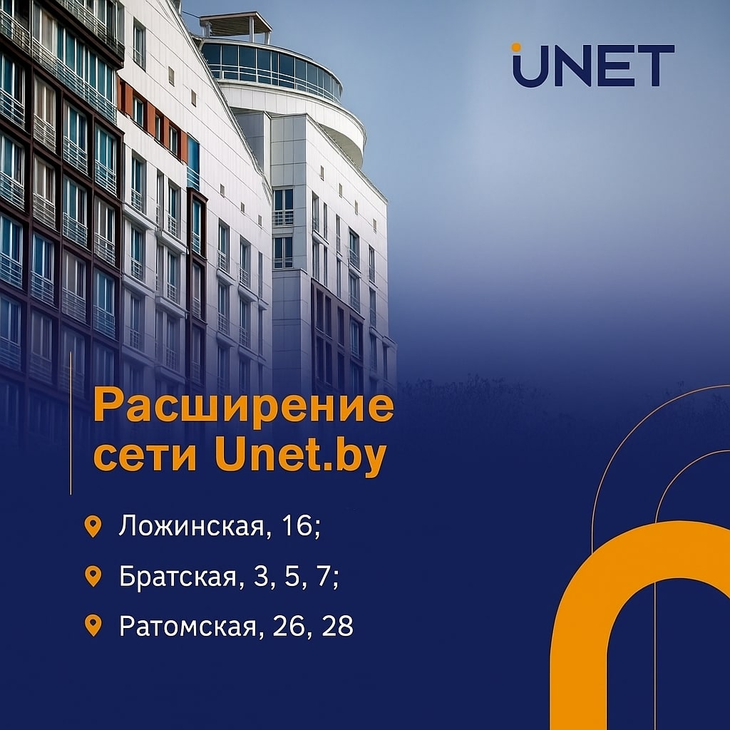 Ратомская, 26, 28.Новый дом — это новая жизнь. Начните ее хорошо, вместе Интернетом от Unet. Подберем для вас именно то, что нужно: Mesh для безупречного Wi-Fi по всей квартире, телевидение, видеонаблюдение, мобильную связь — достаточно об этом громко подумать и мы сделаем.